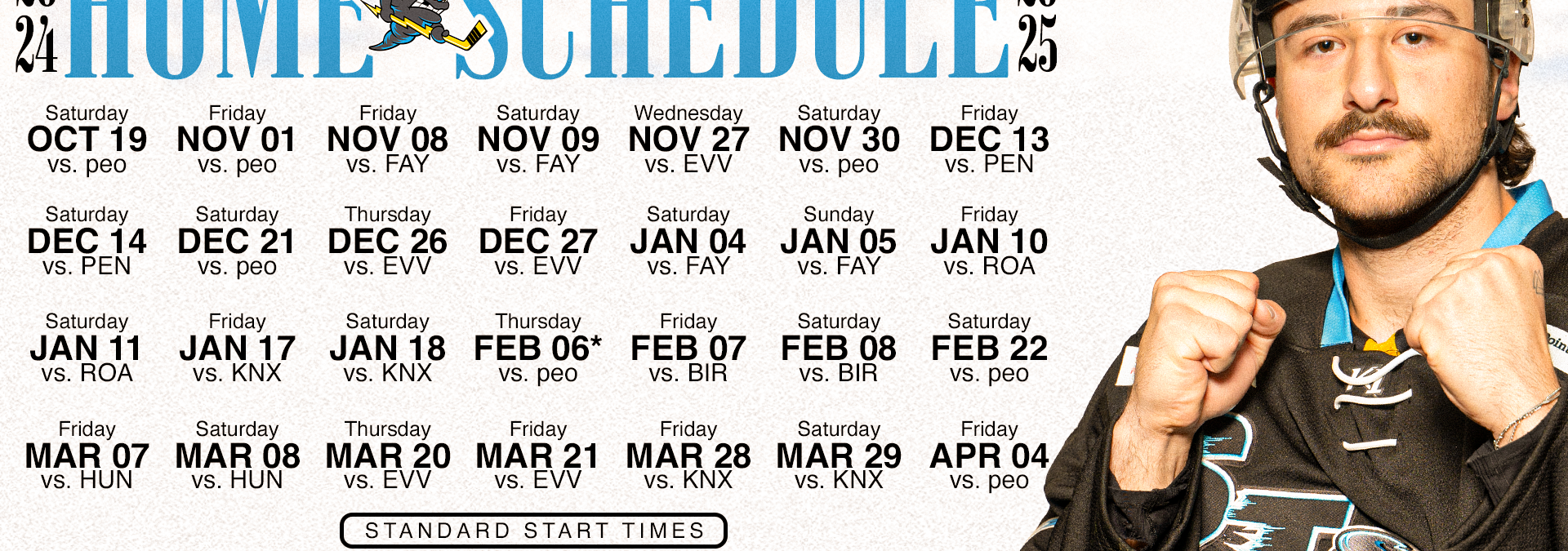 Storm fans will enjoy a home slate that features 11 Friday games, 12 Saturday games, three Thursday matchups and single Wednesday and Sunday game. The Storm play against every team in the SPHL throughout the ‘24-’25 season, welcoming all opponents except the Macon Mayhem to Vibrant Arena.