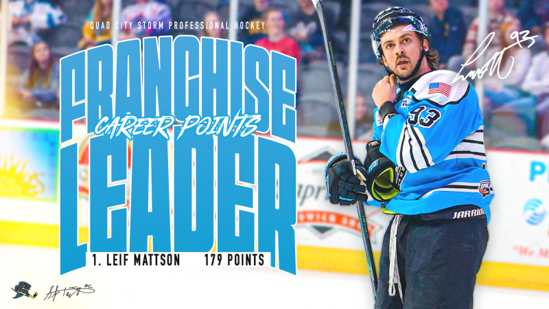 MOLINE, IL. – Quad City Storm forward Leif Mattson entered Friday night with 170 career points in a Storm sweater. He left Vibrant Arena that same night etched into Storm history.