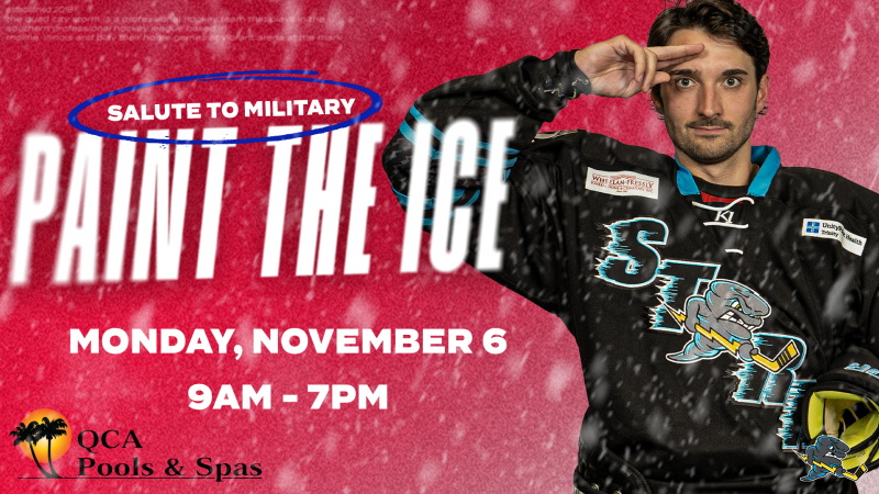 MOLINE, IL. – The Quad City Storm and QCA Pools and Spas will host the 5th annual Salute to Military Ice Painting Monday November 6th from 9AM-7PM at Vibrant Arena at the Mark ahead of the Storm’s Salute to Military Night game Saturday November 11th.