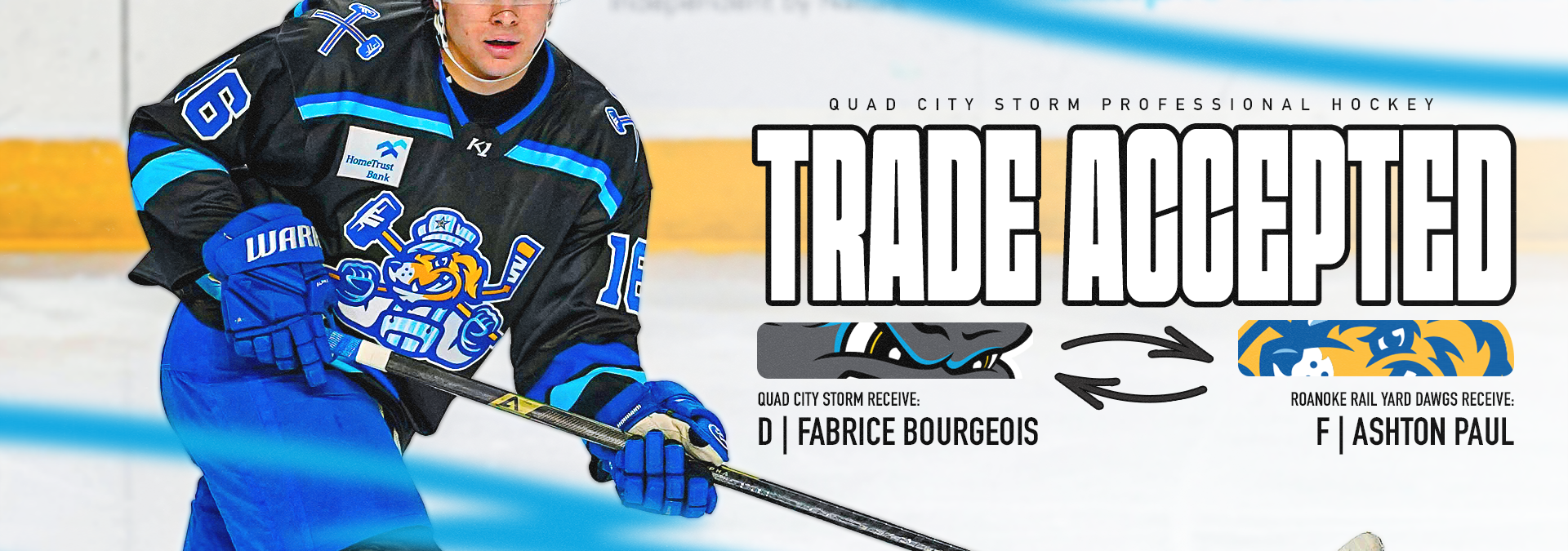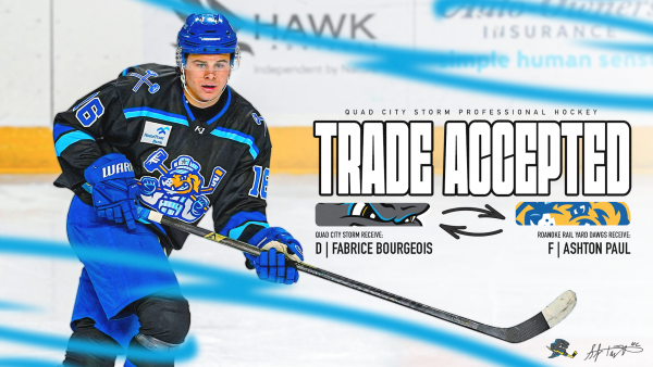 MOLINE, IL - The Quad City Storm announced today that the team has completed a trade with the Roanoke Rail Yard Dawgs, acquiring defenseman Fabrice Bourgeois in exchange for forward Ashton Paul.