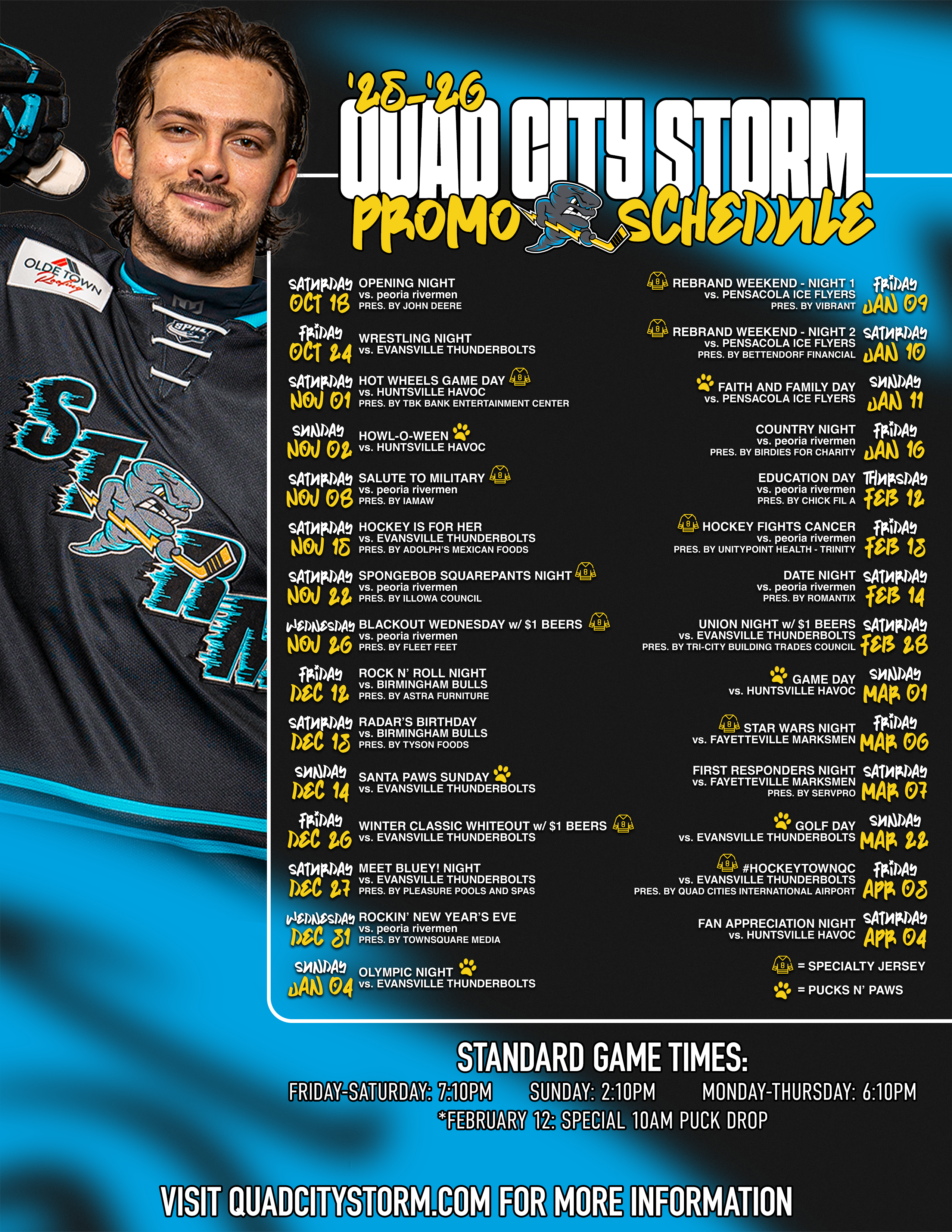 Click Here for the Quad City Storm '25-'26 Promotional Schedule