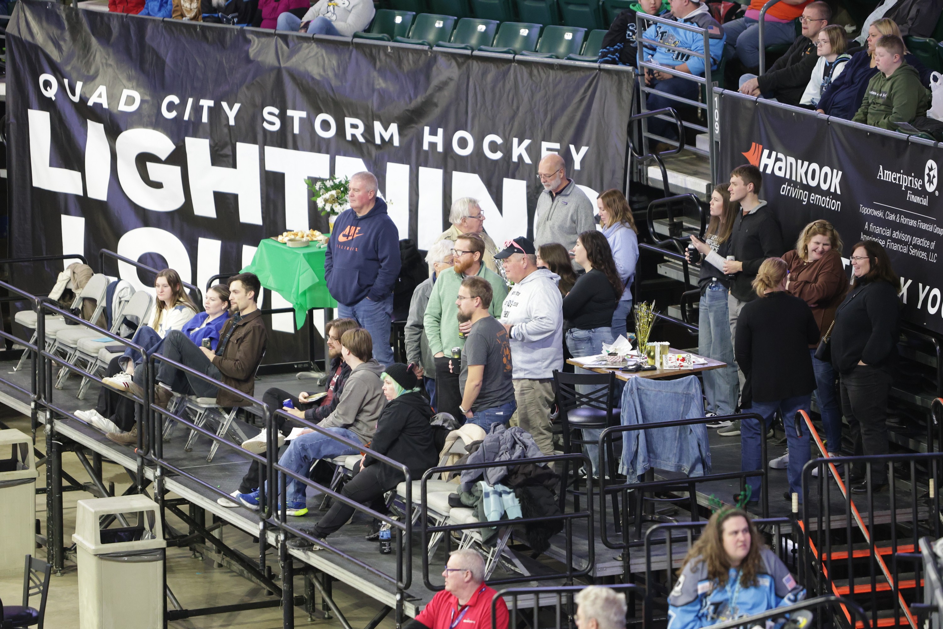 Our Hurricane Hideout, an exclusive group area located behind the glass on an elevated platform, offering a unique perspective of the game. Perfect for groups of 20 to 30 guests at $40 per person, this private space includes a personal server & table service, ensuring a comfortable and enjoyable experience throughout the game.